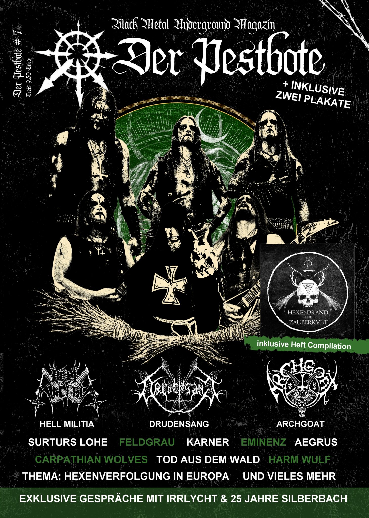 Interviews: DRUDENSANG, HELL MILITIA, ARCHGOAT, SURTURS LOHE, FELDGRAU, KARNER, EMINENZ, AEGRUS, CARPATHIAN WOLVES, TOD AUS DEM WALD, HARM WULF, EXKLUSIVE INTERVIEWS MIT IRRLYCHT & 25 JAHRE SILBERBACH.