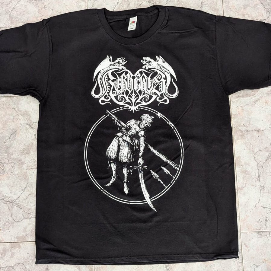 New t-shirt with impaled abrahamic follower on front. Printed for the European tour supporting Demoncy and Ares Kingdom. Fruit Of The Loom. Front only.