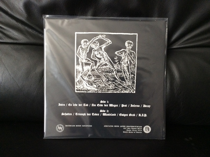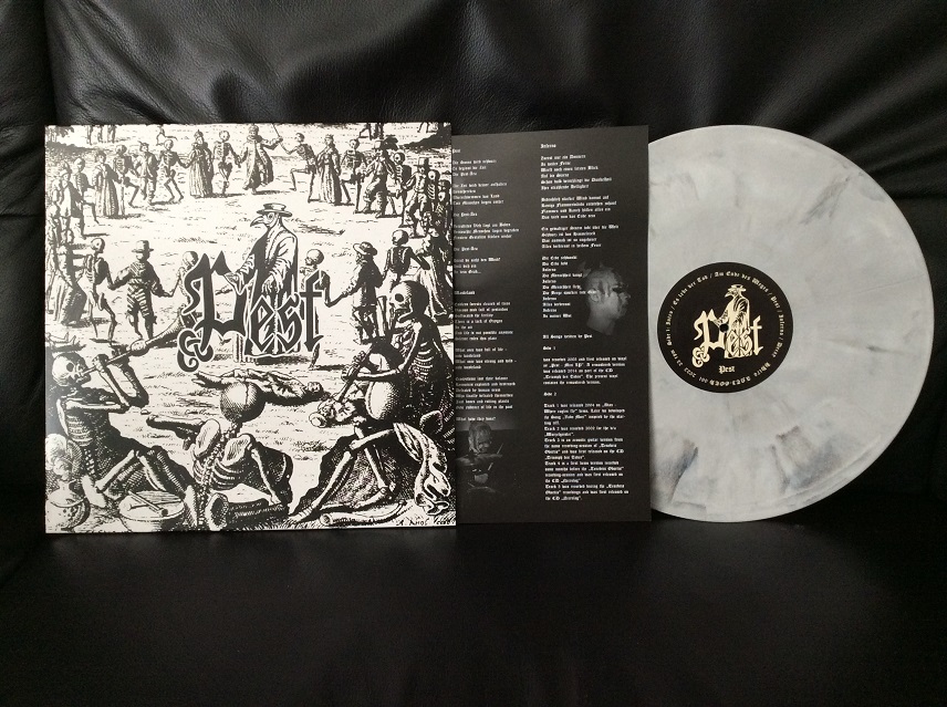 Reissue from the 2007 EP. Follow-up to the classic “Vado mori” album and my favourite material from the band. Originally released by NWN and Bird Of Ill Omen. Available again by NWN and Heidens Hart with 23 minutes of bonus material on side B, making this basically a full length at 47 minutes. All records come on white/grey/black marble vinyl and include an insert with lyrics etc. Great Pest sound at its peak.